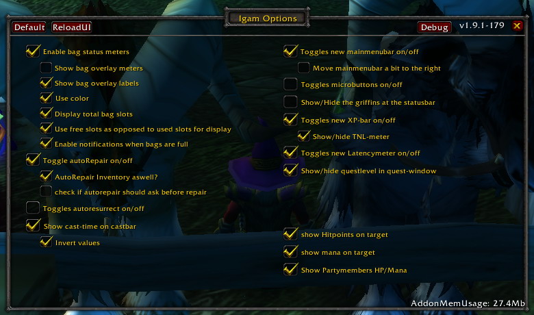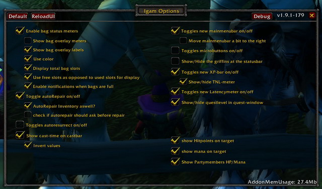 2 - Now run WoW and once logged in type /igam to get the options screen.